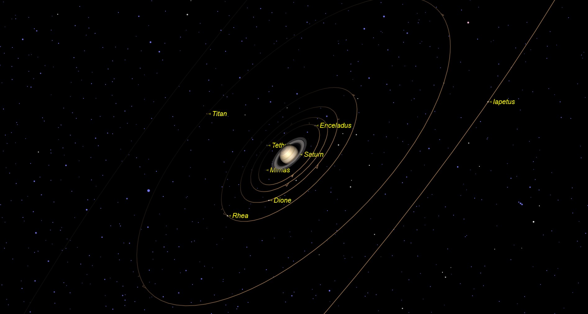 Saturn appears as a yellowish “star” of magnitude +0.6, rising in the early-morning hours around 4 a.m. local time on Feb. 1 and 2:30 a.m. on Feb. 28. The ringed planet starts February in the nonzodiacal constellation of Ophiuchus, but will cross over into Sagittarius on Feb. 24. The waning crescent moon will slide north of Saturn during Feb. 20 to Feb. 21. Facing southeast at 4 a.m. local time on Feb. 20, Saturn can be found to the lower left of the moon. On the following morning, the moon will have shifted to Saturn’s left.